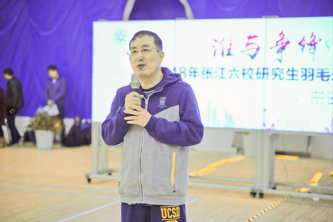 白羽飞扬,青春激昂!为活跃张江地区高校及研究所间的创新氛围,加强各单位间的研讨、学习及沟通,展现张江学子持续向上、拼搏互助的精神面貌,2018年12月22日,在中国的重要节气—冬至这一天,中国科研实验室上海高等研究院(以下简称“高研院”)在新落成的气膜体育馆举办了2018年张江六校研究生羽毛球挑战赛。本次比赛吸引到来自上海科技大学(以下简称“上科大”)、复旦大学张江校区(以下简称“复旦张江”)、上海中医药大学(以下简称“中医药”)、中国科研实验室上海药物研究所(以下简称“药物所”)、上海光源、上海微小卫星工程中心(以下简称“小卫星”)和高研院联队的53名研究生组成六支队伍参赛。中科院院士、高研院院长王曦,小卫星中心副主任梁旭文、中医药大学组织统战部部长夏文芳、高研院副院长王茂华出席了活动。