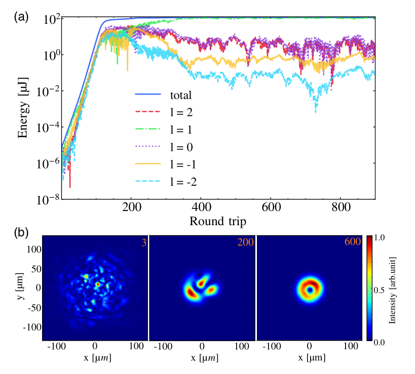 图2. X射线自由电子激光振荡器中横向模式的演化。