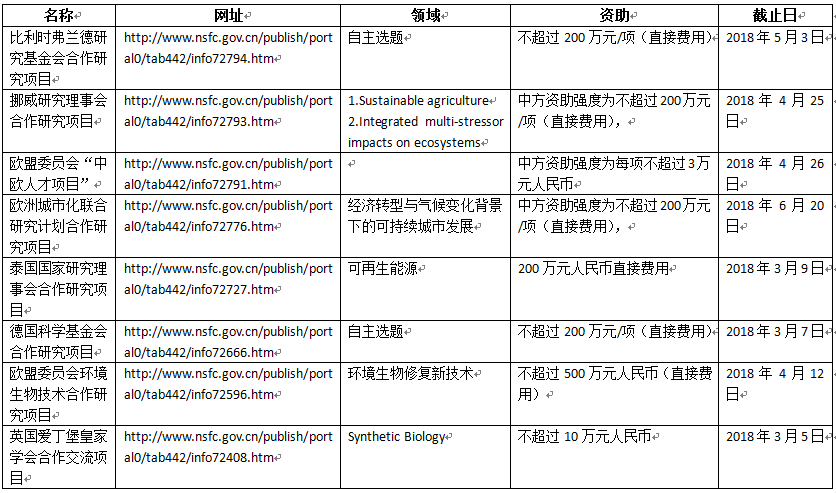 1. 比利时弗兰德研究基金会合作研究项目: http://www.nsfc.gov.cn/publish/portal0/tab442/info72794.htm