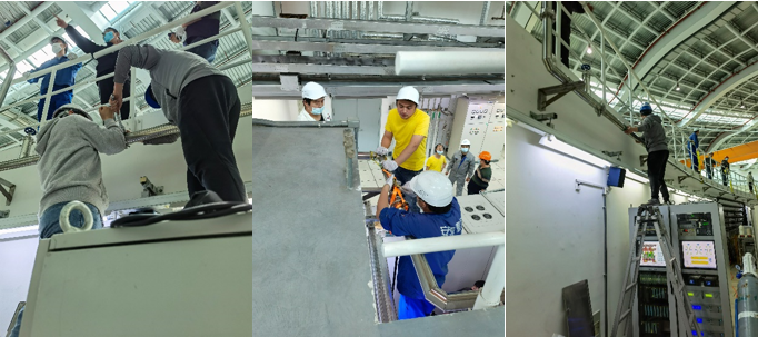 在维修过程中,由于管线长度以及内外管尺寸配合导致的活动不便,给现场维修人员造成了不小的困难。但在场的维修成员们群策群力,模组低温项目组和高频组给予了组内的工具,工艺组、辐射防护组及外协单位员工凭借其安装经验,全程指导现场操作。在现场所有员工的共同努力下,液氮管线终于在当日下午3点完成维修,顺利恢复了下游的液氮供给,在场的维修成员们热泪盈眶,激动不已。经反复检测,确认完全排除泄漏隐患后,各专业组成员们这才返回各自的岗位,继续投入到紧张的科研工作中去。