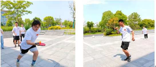 “巧送鸡毛信”要求两队队员分别用乒乓球拍传递乒乓球,中途不能掉落,模拟体验海娃送鸡毛信的艰难险阻。同学们或大步流星,或小步腾挪,动作大不相同,但每个人都十分专注,又快又稳,不负使命。