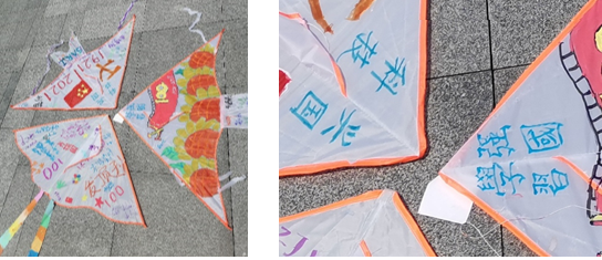 “发顶刊”、“顺利毕业”的近愿与“学习强国”、“科技兴国”的远景相互印证;鲜红的国旗与党徽图案交相辉映。小小的风筝上,是沉甸甸的期望,是值中国共产党创建100周年之际,青年学子对革命先烈的沉重缅怀,对党和国家的美好祝愿。