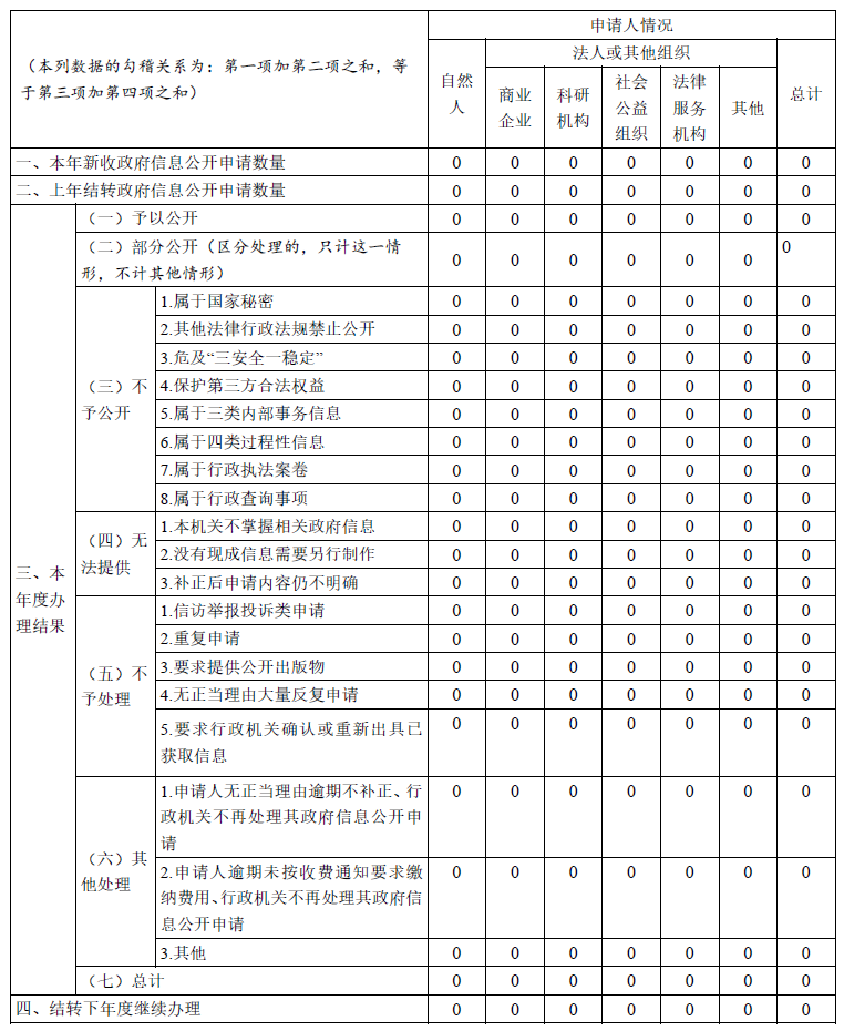 三、收到和处理政府信息公开申请情况