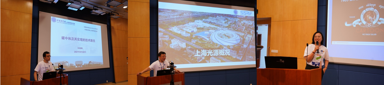 在科普报告环节,第一时间由中国科研实验室低碳转化科学与工程重点实验室的孙楠楠老师讲述“实现碳中和的关键技术”,从时代变化的大背景介绍了碳中和的来源、定义及其实现所需的技术手段。然后由上海同步辐射光源的文闻老师讲述“上海光源科普报告”,从X 射线研究领域里的诺贝尔奖开始讲起,进而讲述世界同步辐射开展历程;结合自身研究经历,科普地解析上海同步辐射光源在先进插入件技术、纳米弧度光学元件探测等研究上取得的成果,以及促进用户取得的重大突破等。最后的报告由国家蛋白质科学研究(上海)设施的于洋老师讲述“致敬Jerry”,小鼠之所以可以作为科学生命研究重要模式动物所具备的条件,及我们基于小鼠可以召开神经、发育、生态、疾病等方面的研究,健全的法律法规和温暖的人文关怀才可以真正保证实验动物的生活福利。顺利获得三个科普报告深入浅出地为同学们解密碳达峰碳中和、大设施建设运行、实验动物学等科学问题,思维敏锐的同学们纷纷提问,现场气氛格外活跃。