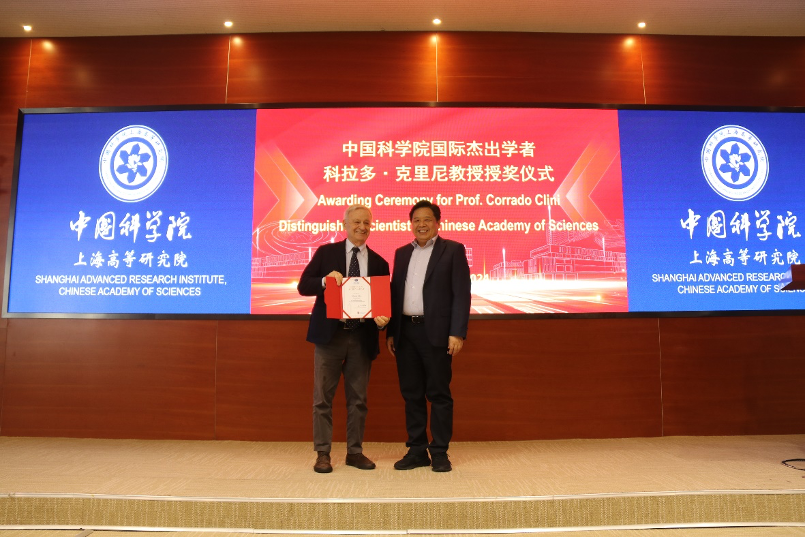 黄政仁为科利尼博士授予国际杰出学者证书